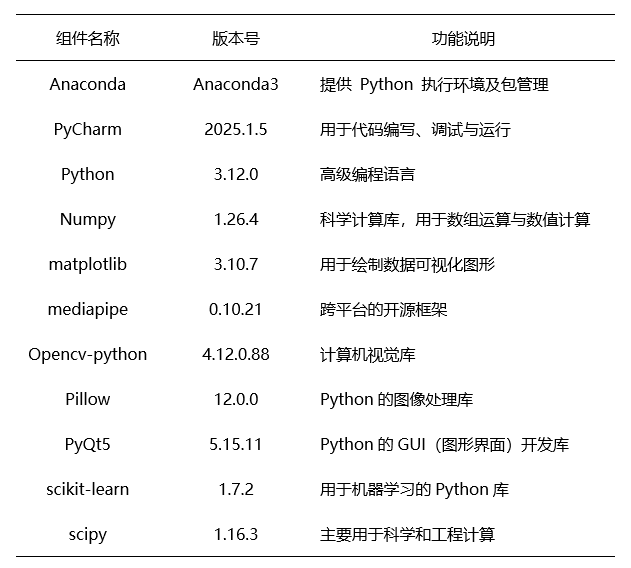 对本实验所需的各类软件及工具的基本信息进行了清晰汇总。