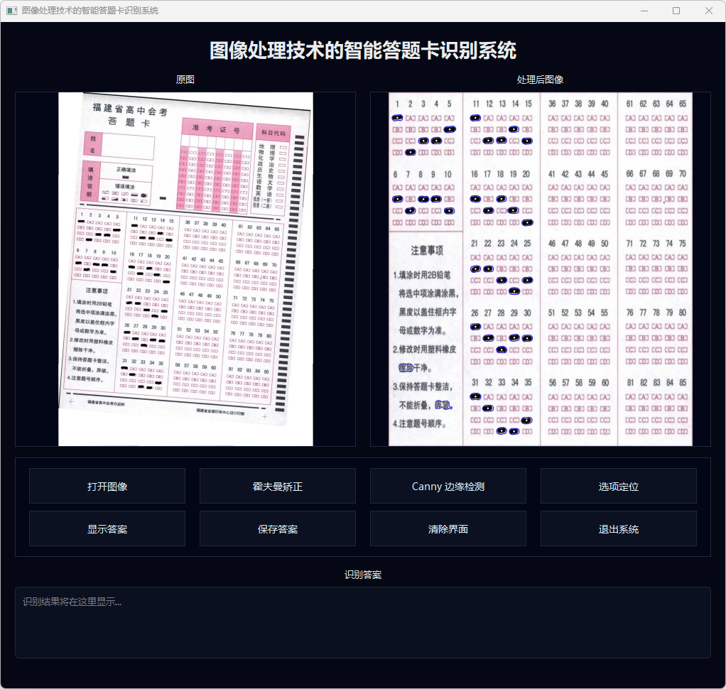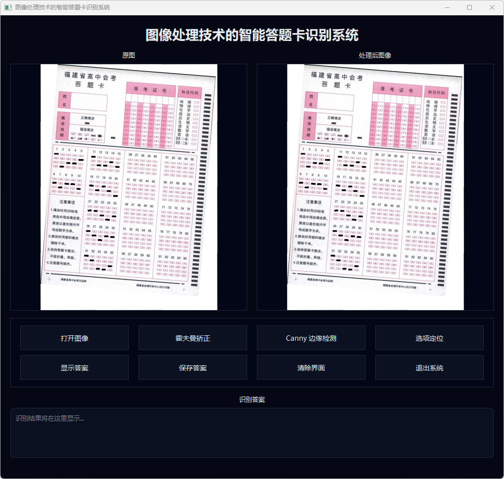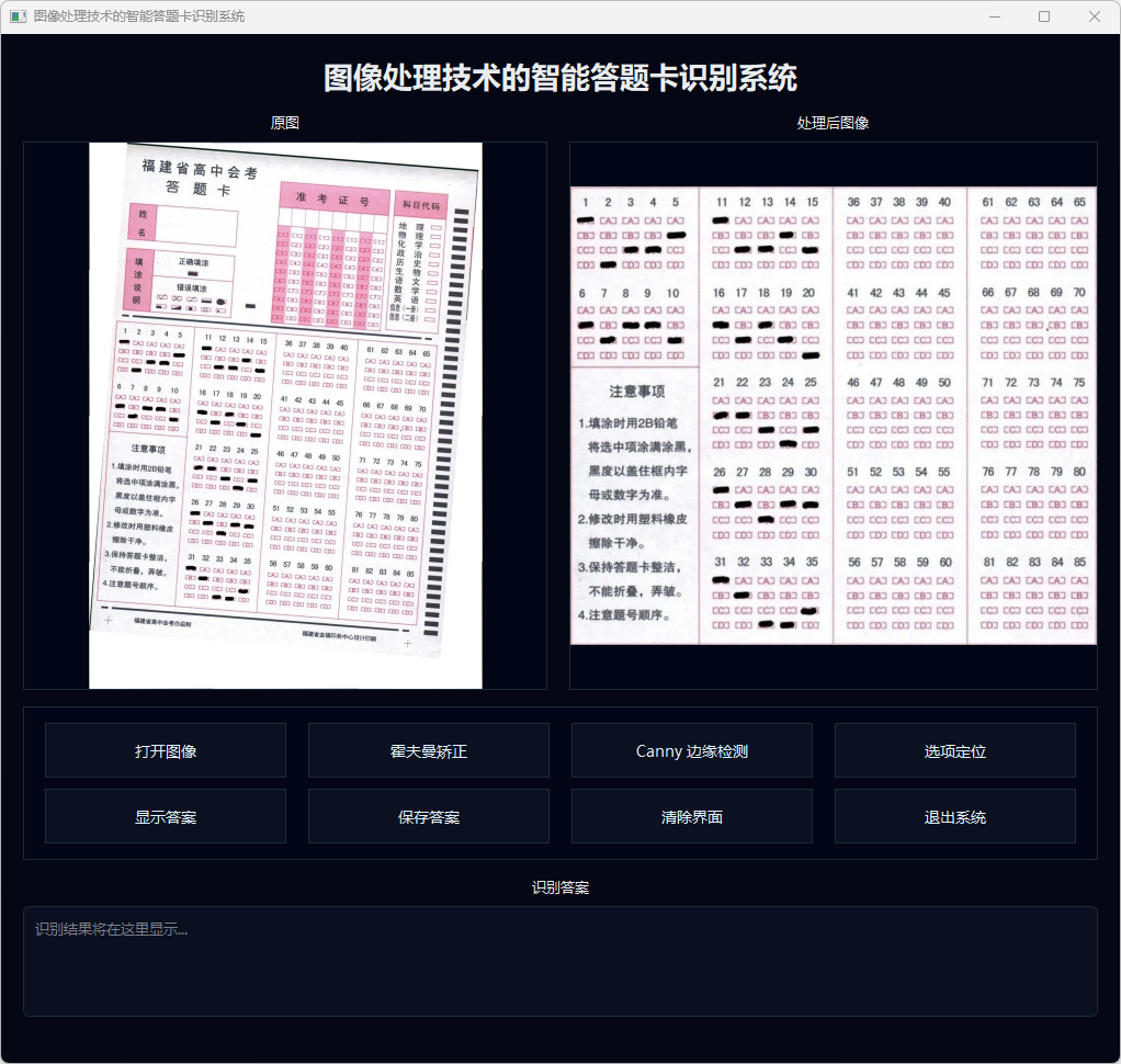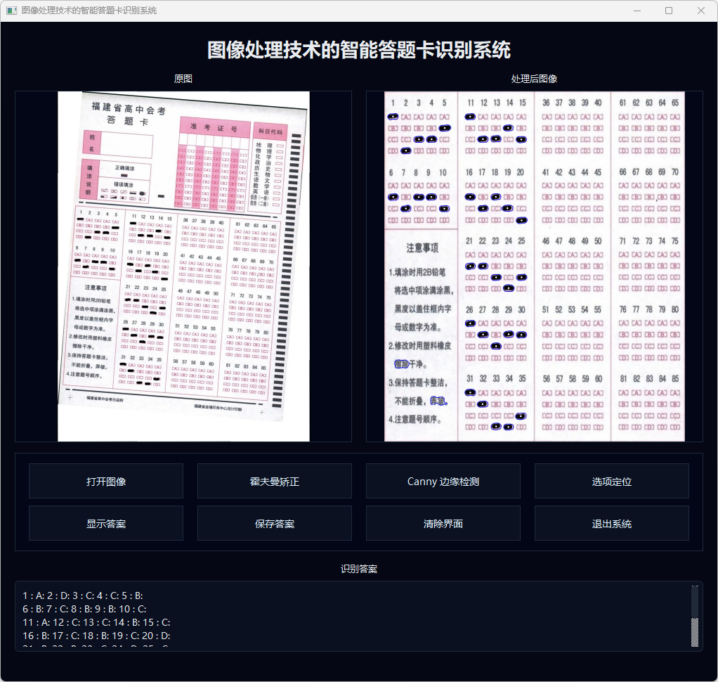 实验结果表明,系统能够快速、准确地识别答题卡中的填涂答案,识别精度较高,且处理速度满足实际需求。该系统为传统的人工批改提供了高效、准确的替代方案,具有较高的实用价值。