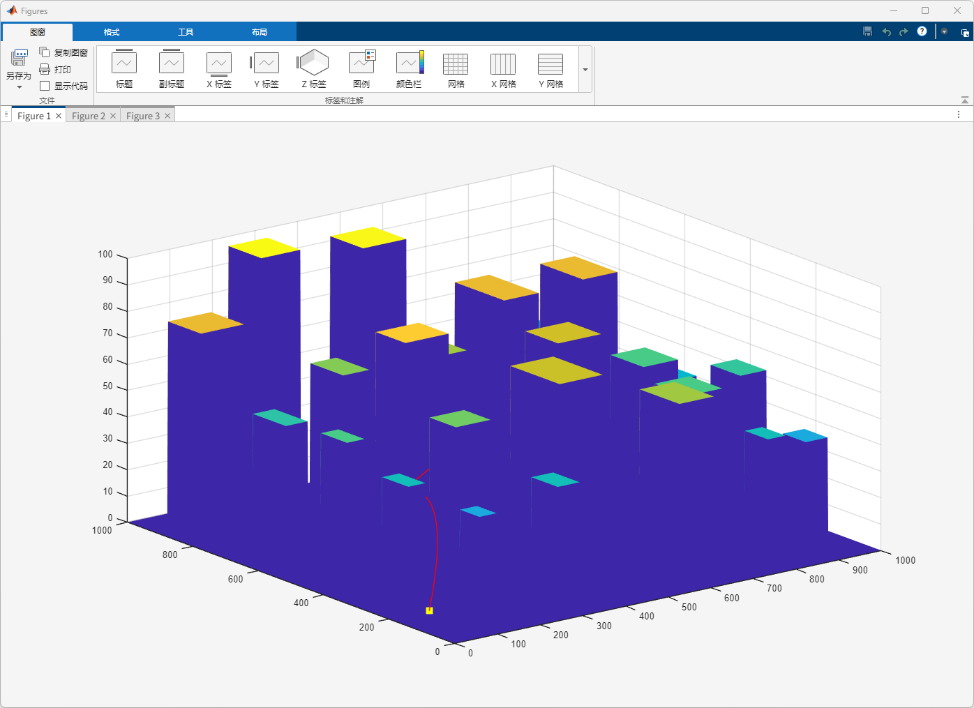 图2 三维路径规划结果与地形障碍物可视化