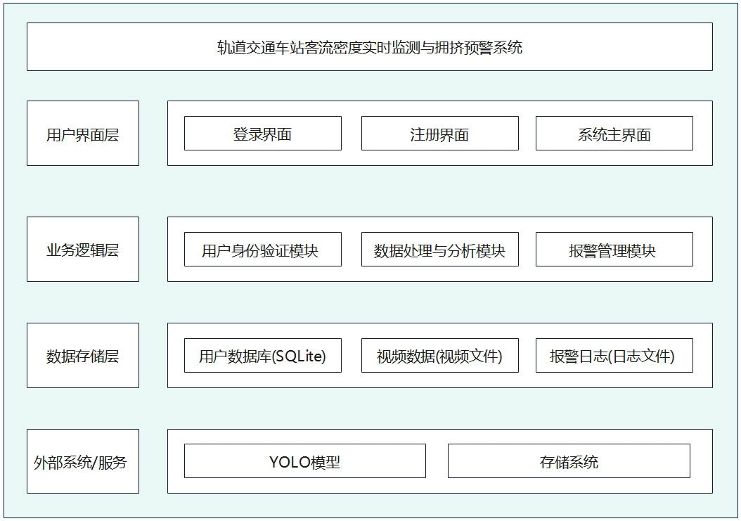 该系统通过基于YOLOv11的目标检测模型实时监测轨道交通车站内的客流密度,并结合预设的阈值触发拥挤预警,提供多种报警方式和数据导出功能,旨在提升车站的安全性和运营效率。