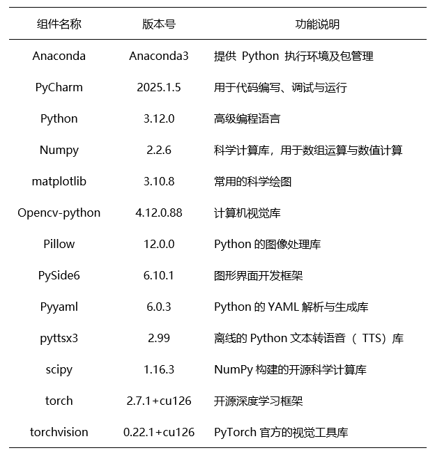 对本实验所需的各类软件及工具的基本信息进行了清晰汇总。