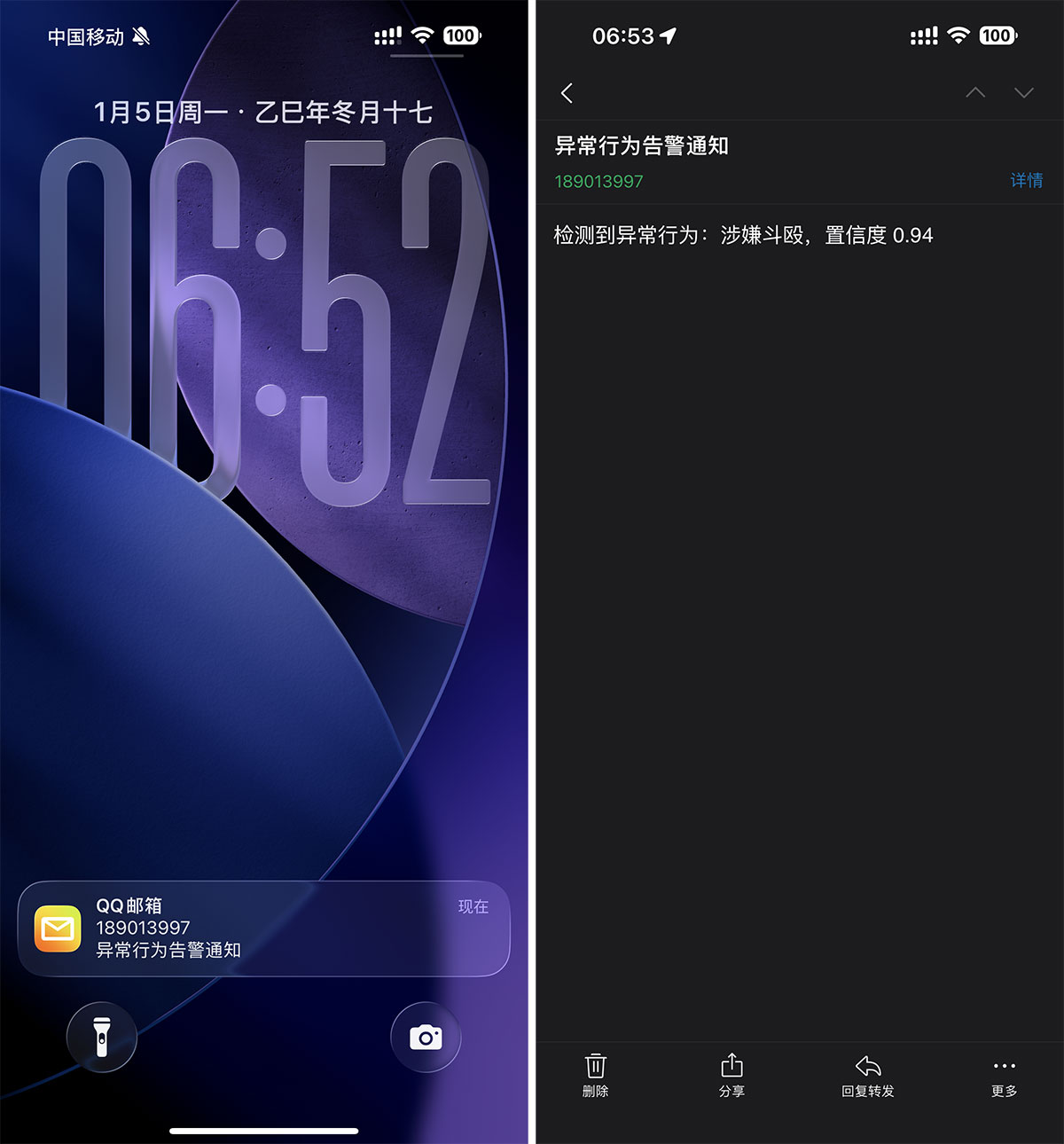 图37 邮件报警显示