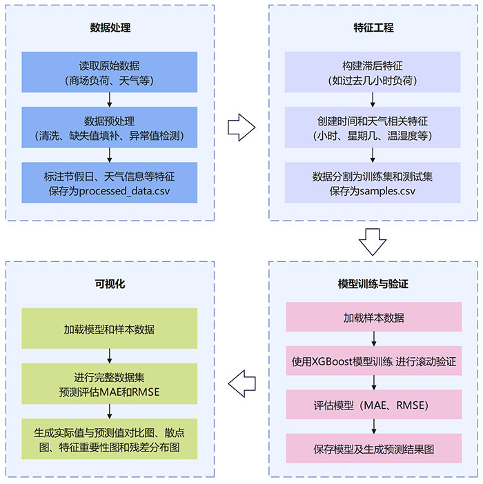 摘要:随着智能建筑和能源管理系统的快速发展,如何准确预测商业设施的能源需求已成为提升能源利用效率、降低运营成本和优化能源配置的关键。本文提出了一种基于XGBoost模型的智能商场能源需求预测方法。该方法结合了天气数据、节假日信息及历史负荷数据,通过特征工程构建滞后特征,并采用时间序列分析对数据进行处理。