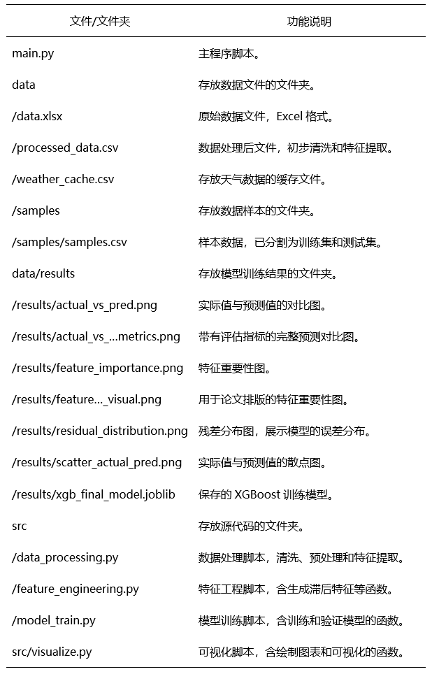 整体运行结果表明,模型在智能商场能源需求预测中表现良好,预测误差较小(MAE=31.94, RMSE=40.59),特征重要性分析显示滞后期特征对预测具有较大影响,且模型预测与实际值之间有较强的相关性。