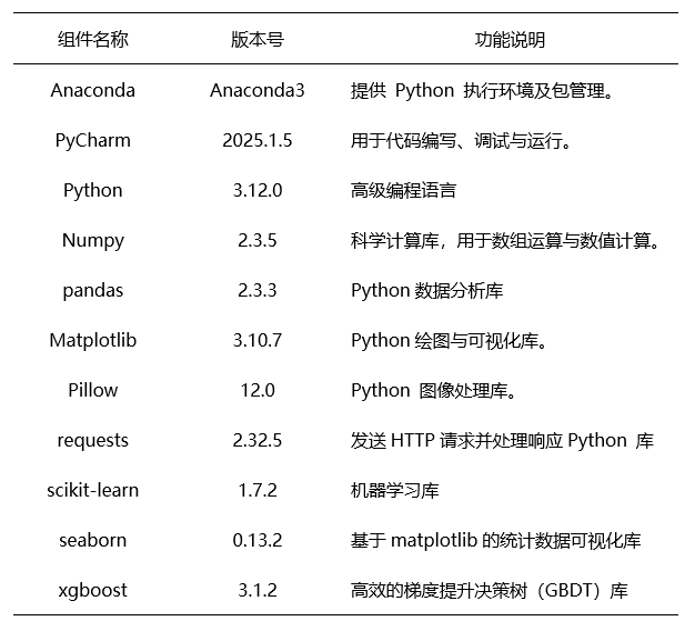 对本实验所需的各类软件及工具的基本信息进行了清晰汇总。
