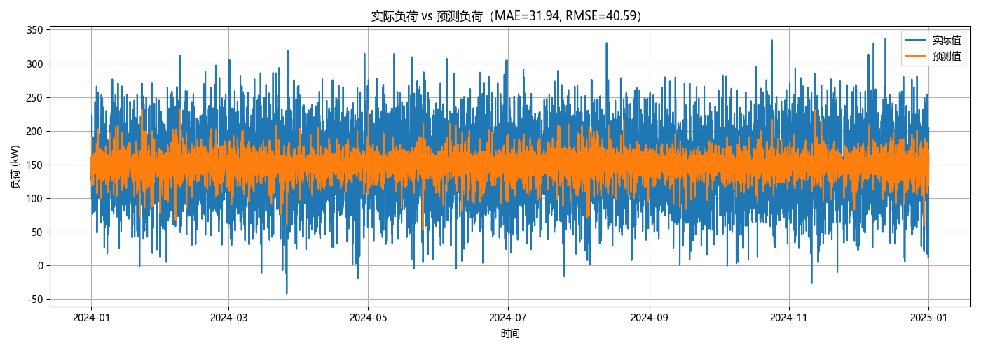 图3 实际负荷 vs 预测负荷(MAE=31.94, RMSE=40.59)