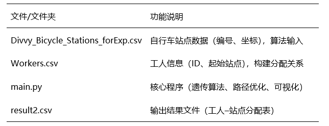 遗传算法作为一种典型的智能优化方法,具有全局搜索能力强、不依赖梯度信息、适用于复杂优化问题的特点,已在路径规划、调度优化等领域得到广泛应用。因此,借助遗传算法对共享单车维修调度进行研究,有助于在保证效率的同时,提升工人负载均衡性,为共享单车运维体系提供智能化的优化手段。