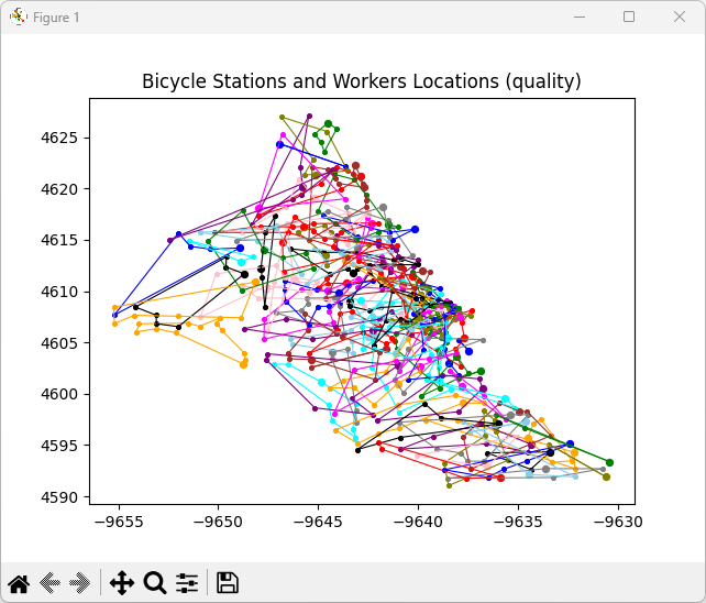 图2:遗传算法在 quality 模式下的工人任务路径分布