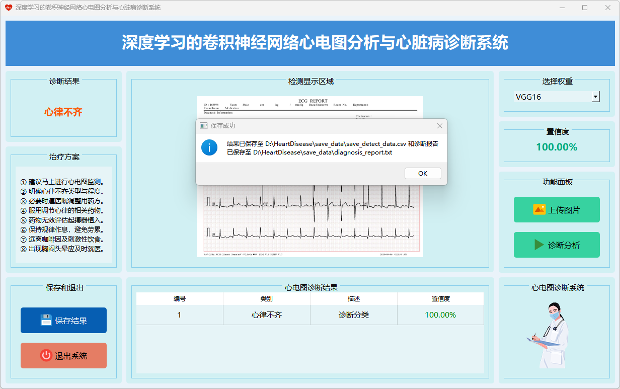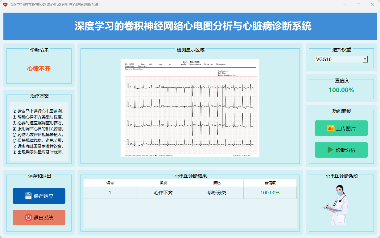VGG16与ResNet50在心电图信号分类任务中的高效性和准确性,使其在心脏病诊断中具有重要的应用价值。通过对心电图信号进行实时分析,系统能够对心肌梗死、心律不齐和正常心律等心脏疾病进行有效分类。这为临床诊断提供了有力支持,尤其是在远程医疗和实时监控中,能够快速筛查患者的心脏健康状况。此外,VGG16与ResNet50模型的训练和推理效率使其在实际应用中具有较高的实时性,适用于心电监测、健康评估及辅助诊断等多个应用场景。