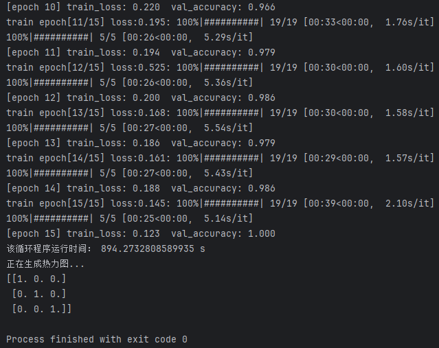 根据这个日志输出来看,VGG16在训练过程中表现出较为缓慢的进展,验证准确率在15个epoch后达到了92.5%,而ResNet50则以更快的收敛速度和稳定的训练损失,在最终epoch达到了完美的100%验证准确率,显示出更强的泛化能力。