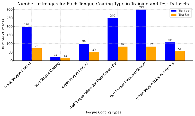 本数据集包含六类舌苔样本:红色舌苔厚腻、白色舌苔厚腻、黑色舌苔、白霉舌苔、紫色舌苔和红色舌苔黄腻厚,旨在构建高精度的分类模型,实现对不同舌苔状态的自动识别,为临床提供辅助诊断依据,推动智能医疗技术在中医诊断和疾病早期检测中的应用。