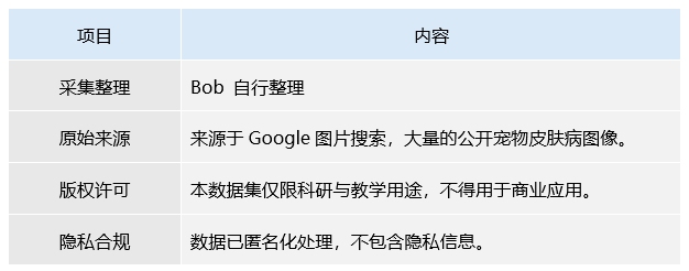 (1)数据来源:基于公开的宠物皮肤病影像数据集,仅限科研与教学用途。
