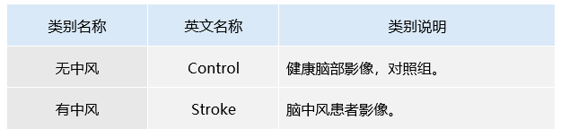 (2)数据结构:包含训练集与测试集,分为两类样本(健康脑部、脑中风)。