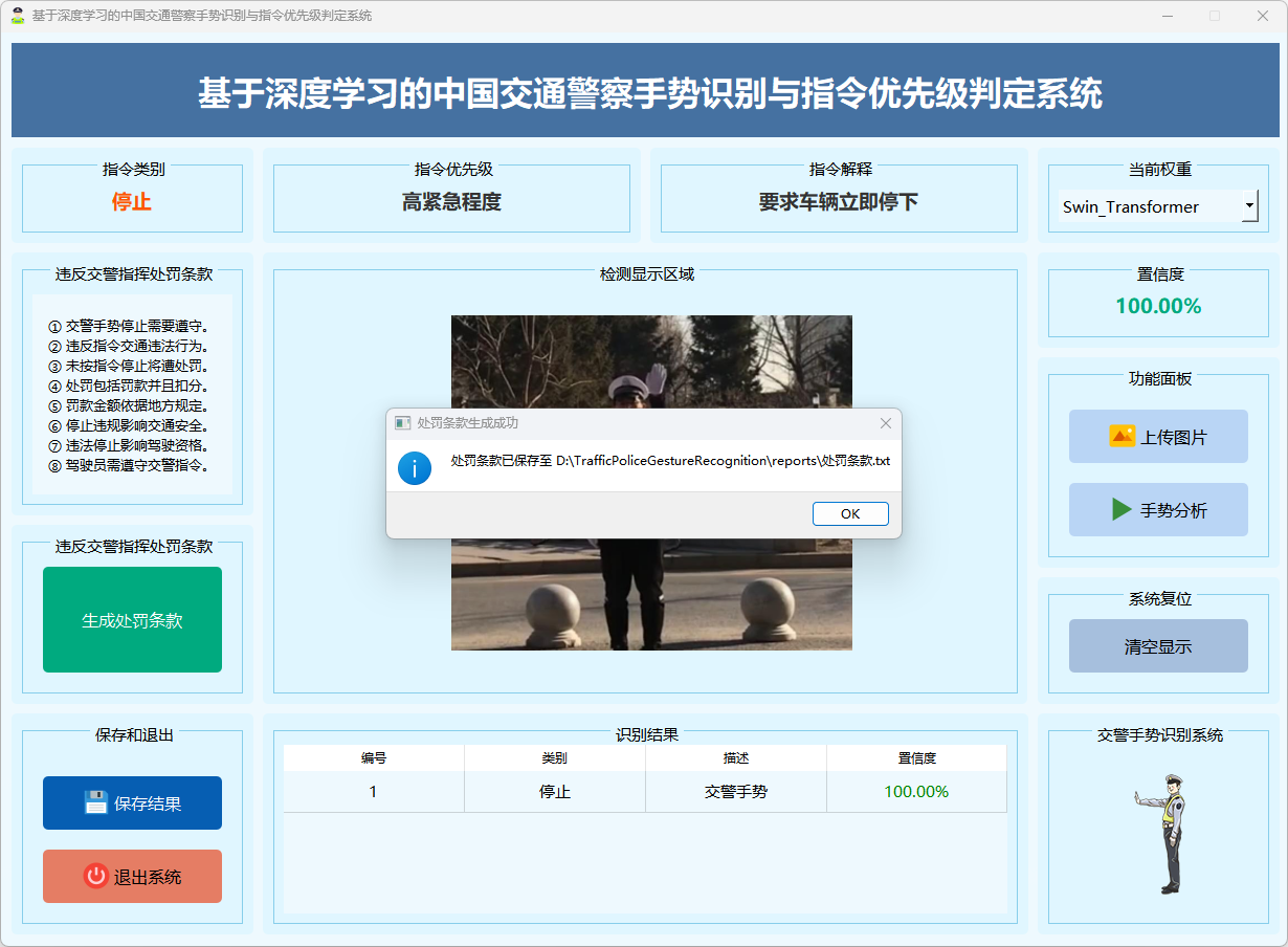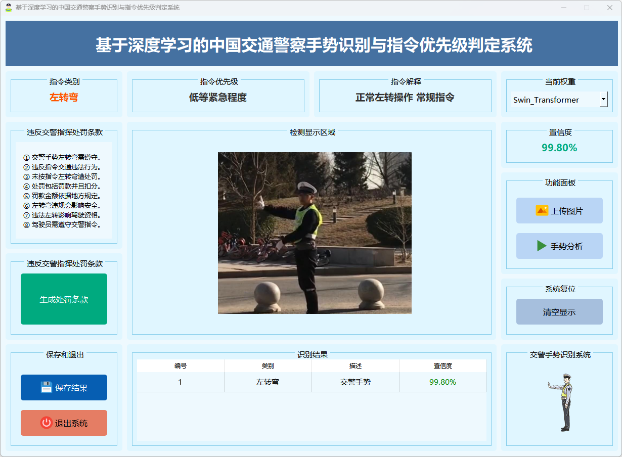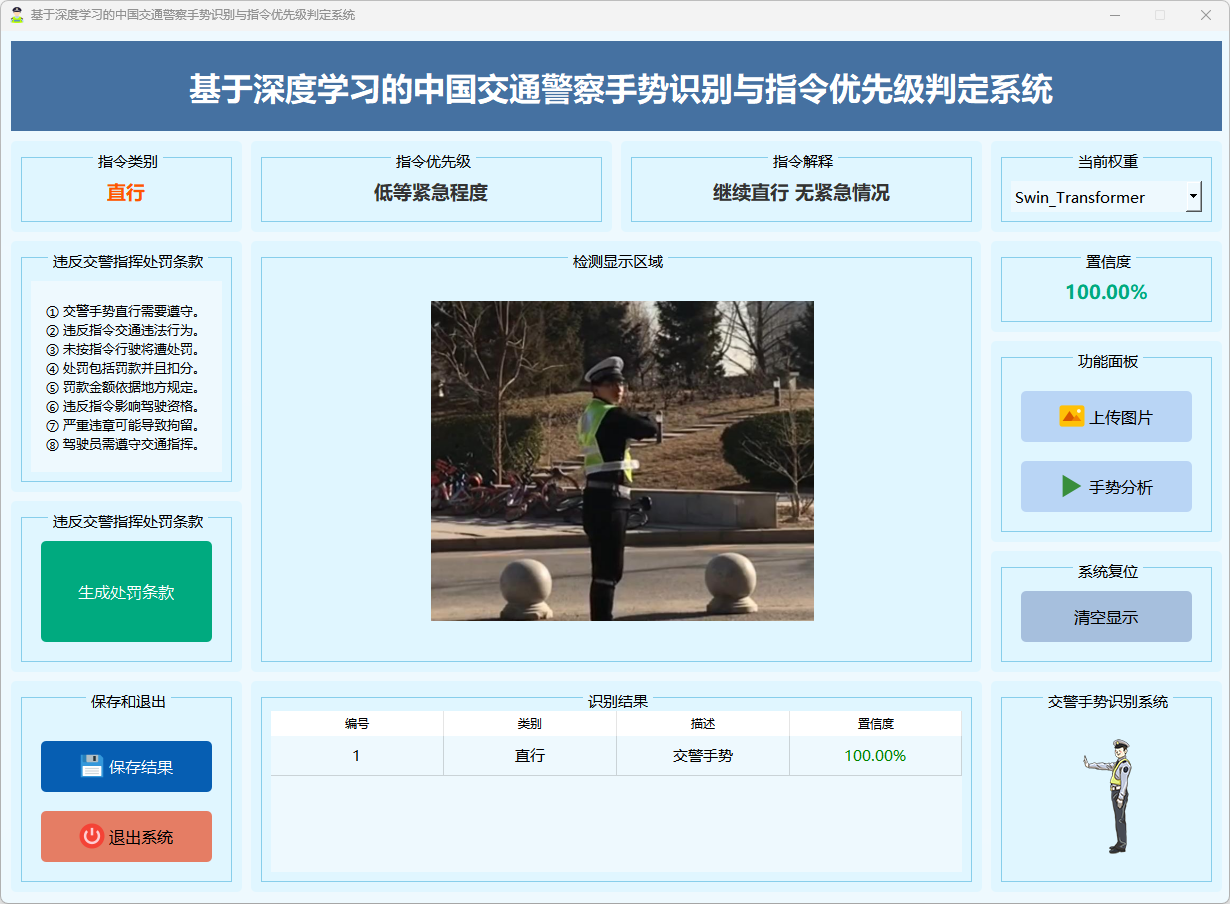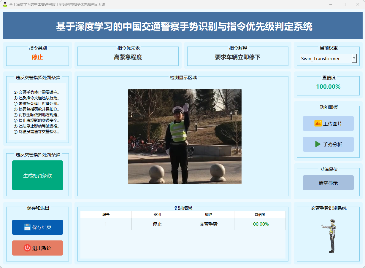 本系统基于Swin Transformer模型,实现中国交通警察手势,集成特征提取、分类推理与结果可视化,为中国交通警察手势识别辅助提供支持。