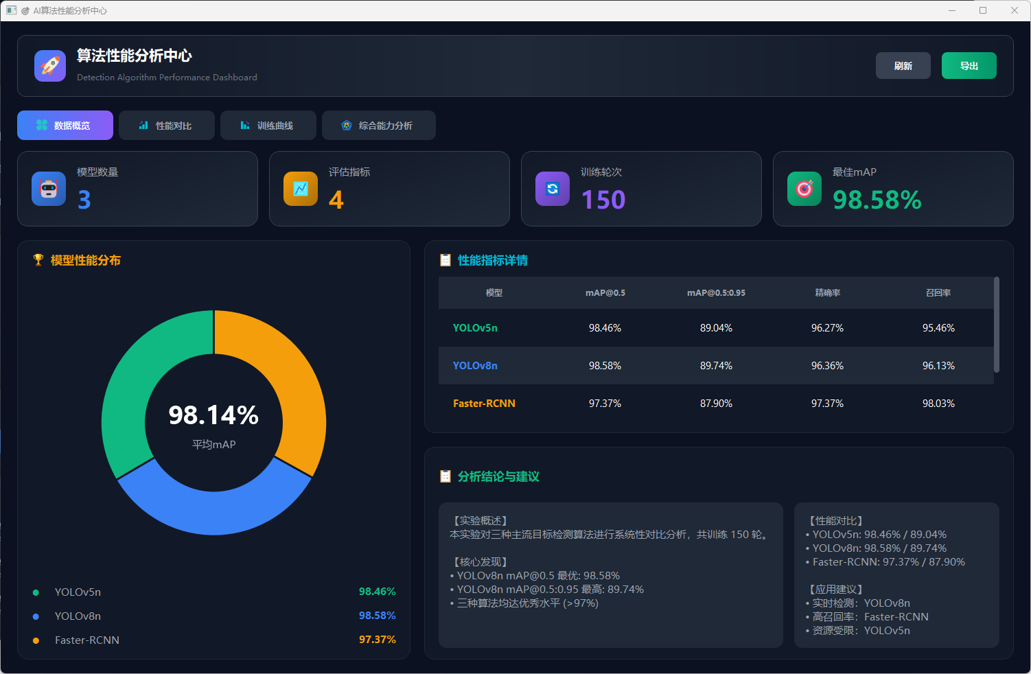 - 收敛速度:前30轮快速收敛,30-100轮稳定提升,100-150轮精细调优