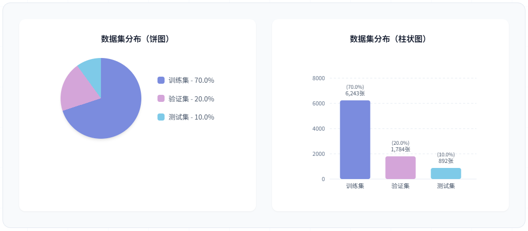 数据集按照约 70:20:10 的比例划分为训练集、验证集和测试集: