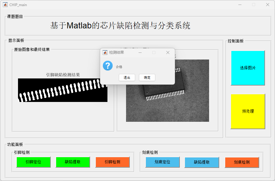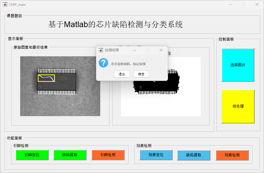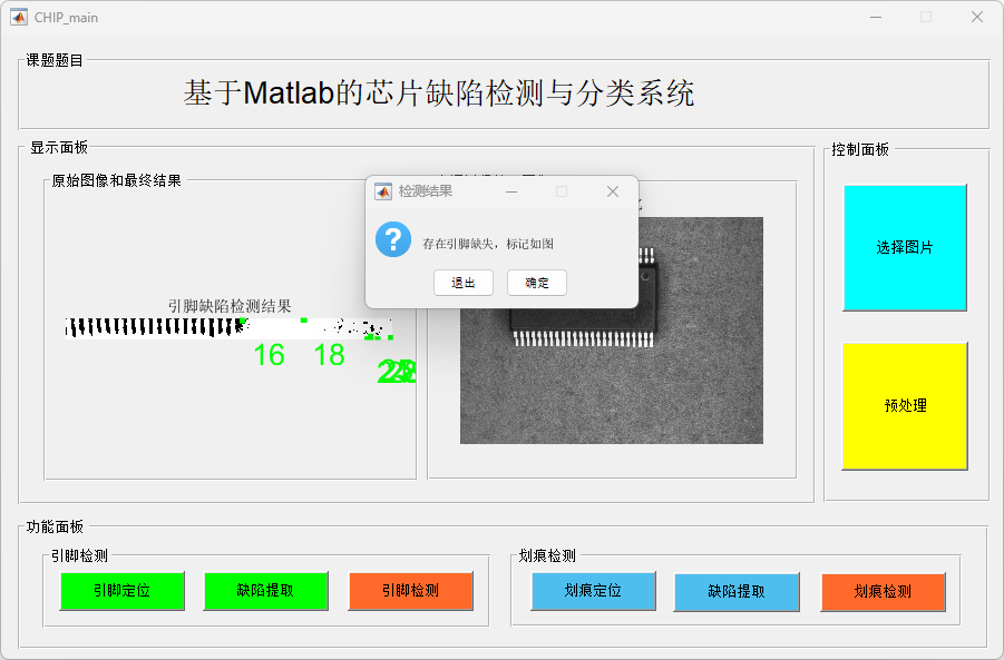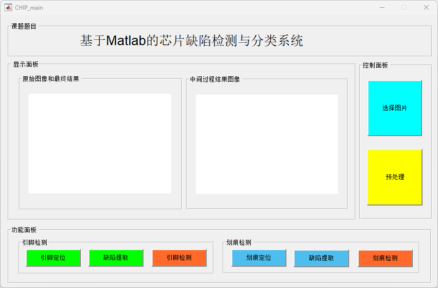 基于MATLAB 的芯片缺陷检测与分类系统的完整操作界面布局。