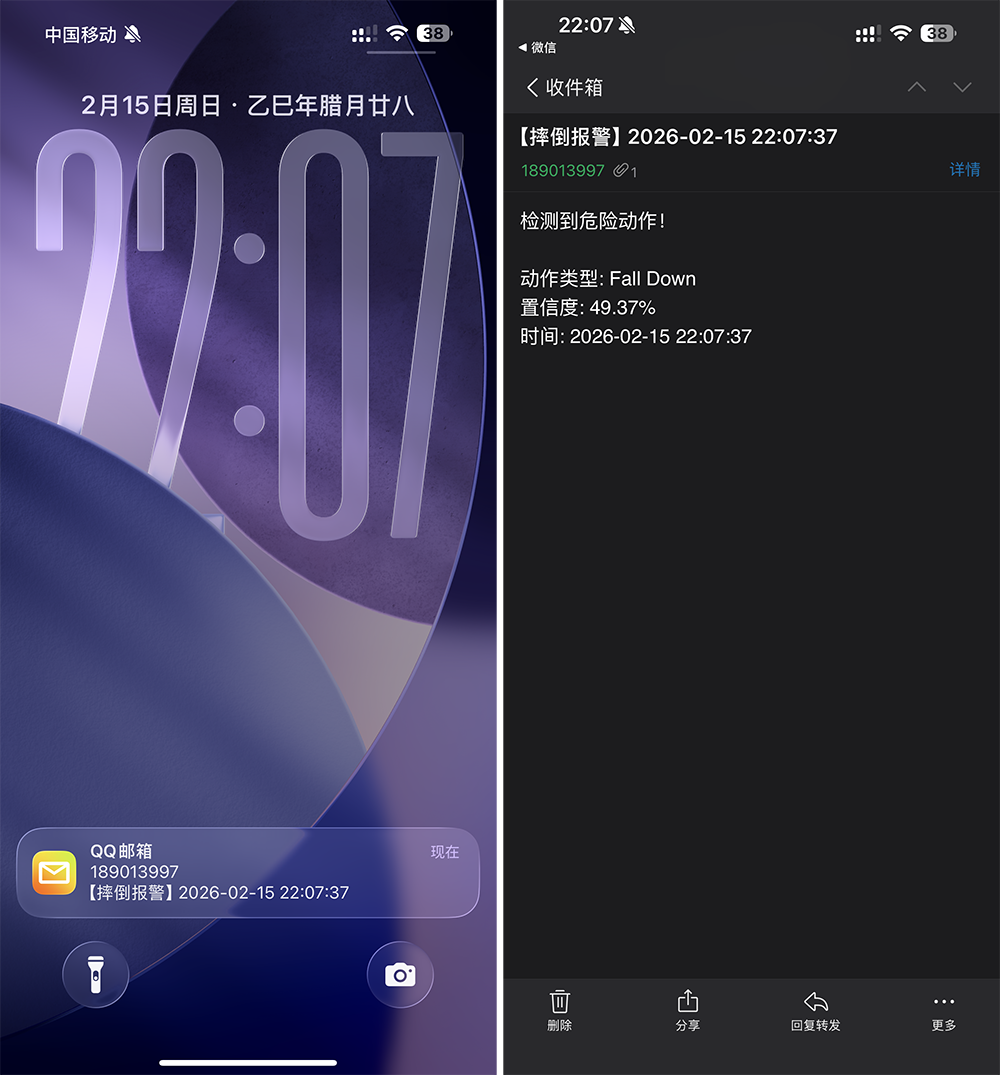 在自建的室内场景数据集上进行实验,结果表明该系统在保持实时处理速度的同时,对摔倒动作具有较高的识别准确率和召回率,能够有效区分摔倒与躺下等相似动作,可为独居老人居家安全监护提供一套完整、实用的技术解决方案。