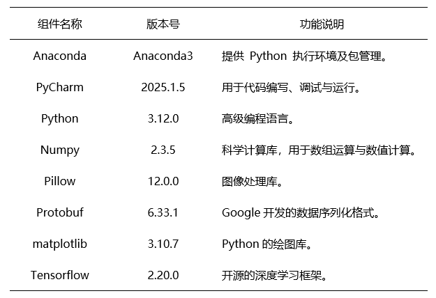 对本实验所需的各类软件及工具的基本信息进行了清晰汇总。