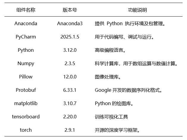 对本实验所需的各类软件及工具的基本信息进行了清晰汇总。