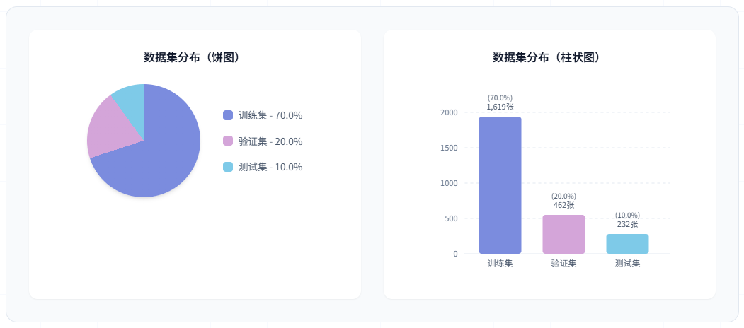 训练集用于模型的参数学习和特征提取能力训练。验证集用于训练过程中的性能监控和超参数调优,帮助选择最优模型。测试集用于最终的性能评估,确保模型在未见过的数据上具有良好的泛化能力。