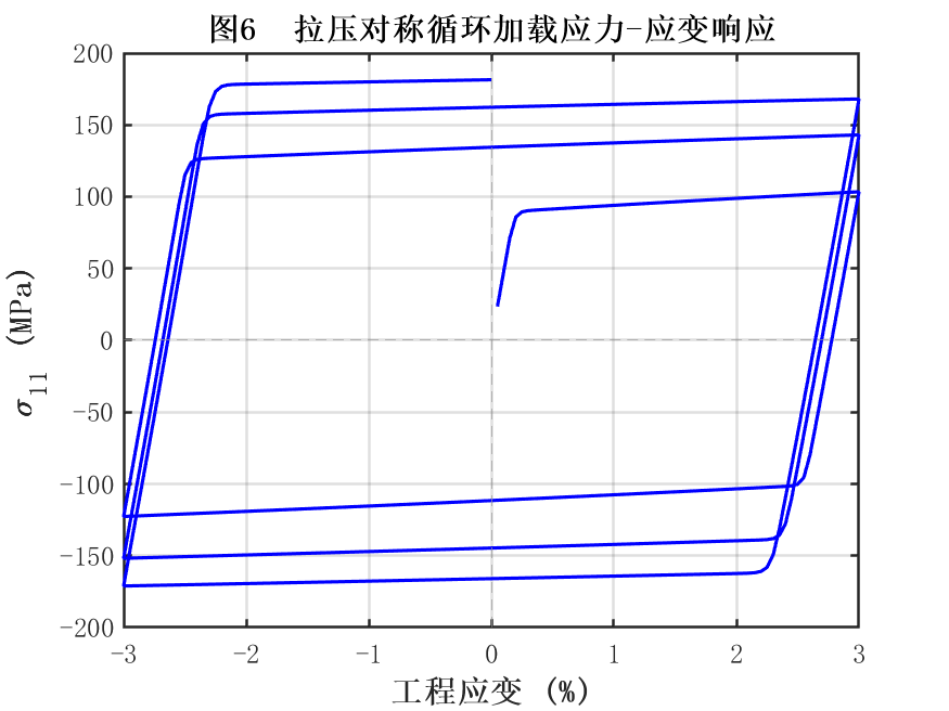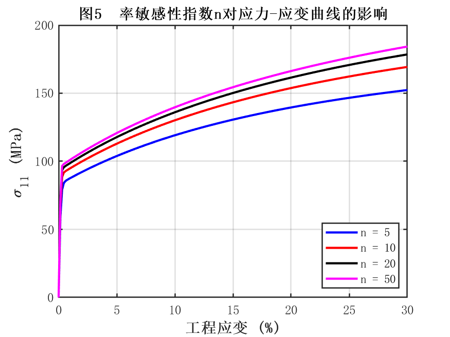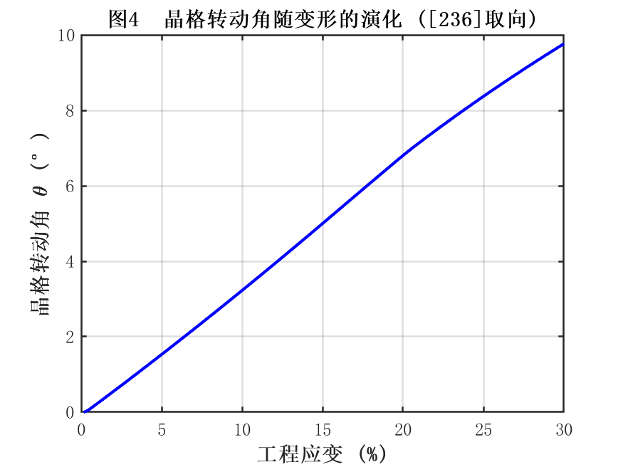 以铜单晶为对象,系统研究了晶体取向([001]、[011]、[111])对单轴拉伸力学响应的影响,模拟结果与Kalidindi等(1992)的实验数据吻合良好。通过Schmid因子分析验证了不同取向下多滑移激活的理论预测,详细分析了12个{111}⟨110⟩滑移系的分切应力、滑移速率和临界分切应力的演化规律。此外,还考察了率敏感性指数n(5~50)对屈服行为的影响、非对称取向[236]下的晶格转动演化,以及拉压对称循环加载下的包辛格效应。参数敏感性分析表明,初始临界分切应力τ₀主要控制屈服水平,初始硬化模量h₀和饱和应力τ_s分别影响硬化速率和饱和行为。