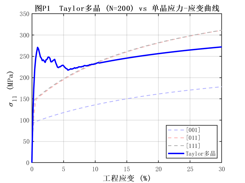 图10 Taylor多晶 vs 单晶应力-应变对比