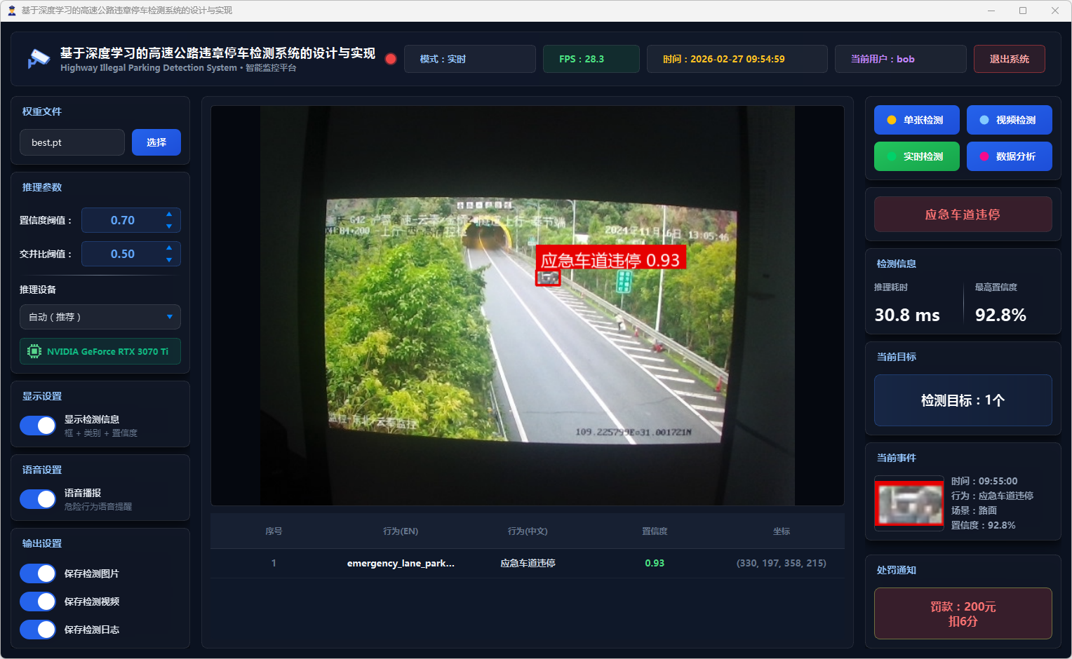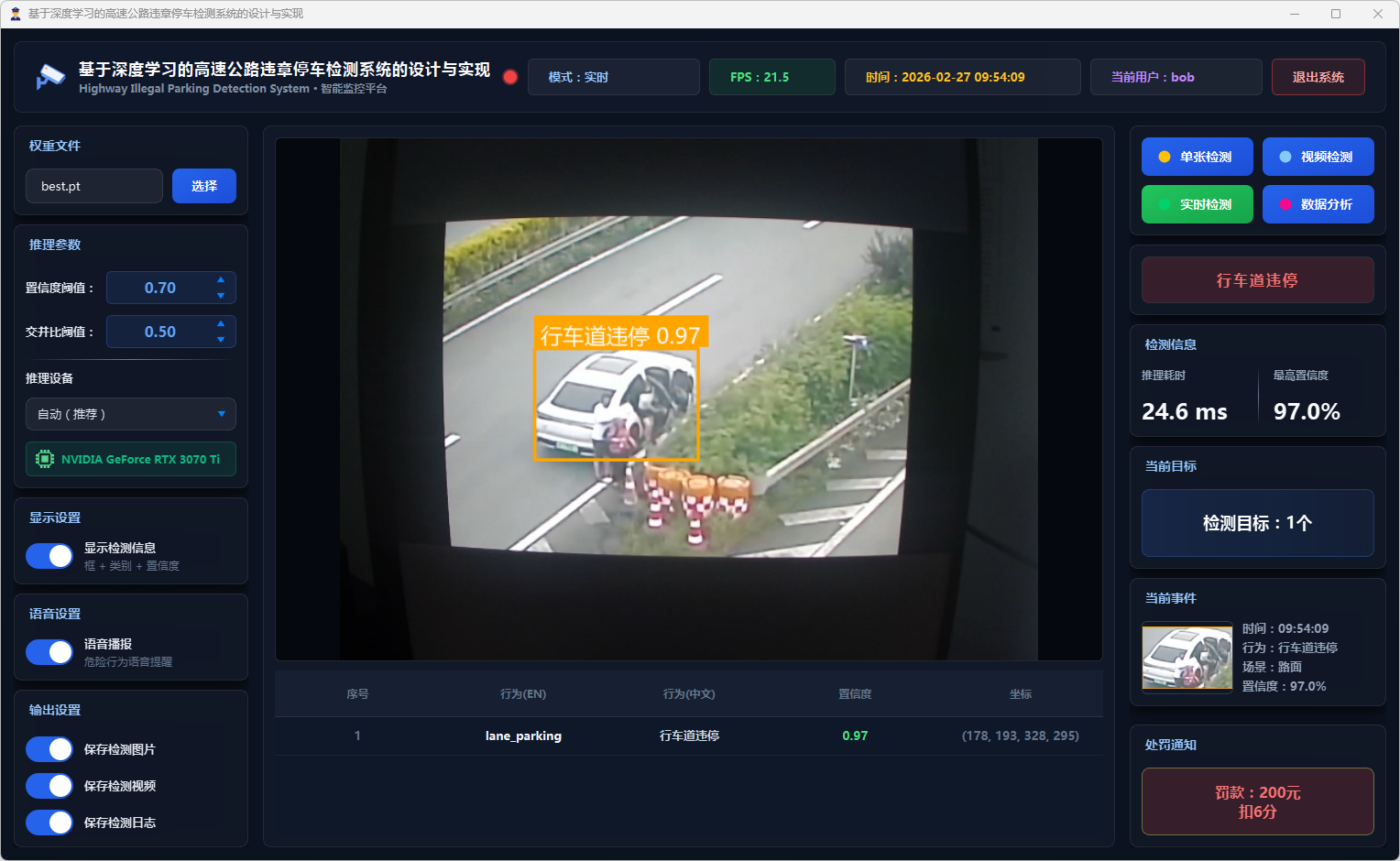 基于YOLOv11的高速公路违章停车智能检测系统,支持图片、视频及实时摄像头多源输入,实现违停行为的自动识别、风险评估与告警。
