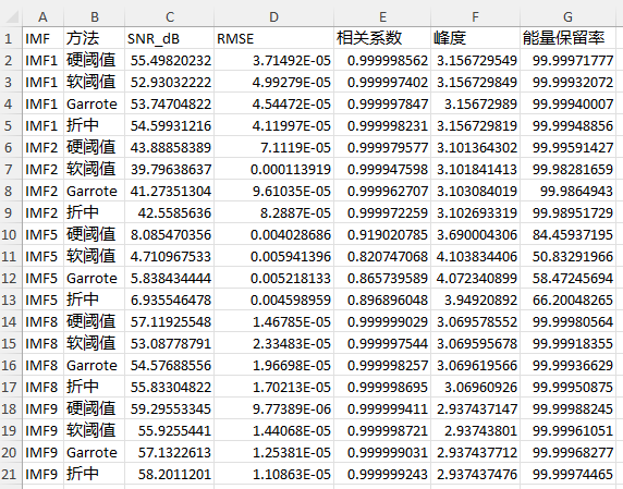 图表:19张可视化图(收敛曲线/参数寻优/IMF时频域/10组IMF去噪对比/整体时频域对比/频域叠加),各含.fig和.png格式。数据:Excel多表格(参数信息+IMF级6维指标+整体级6维指标)+ workspace.mat工作空间文件。