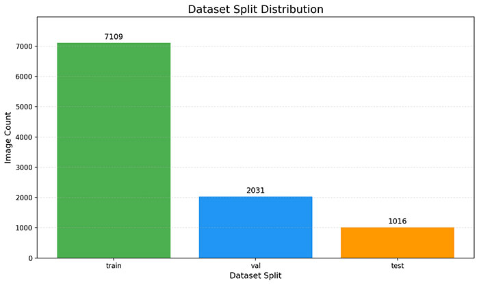 数据集采用标准 YOLO 格式组织,图像和标注文件分别存放在 images/ 和 labels/ 目录下,并按训练集、验证集、测试集划分。