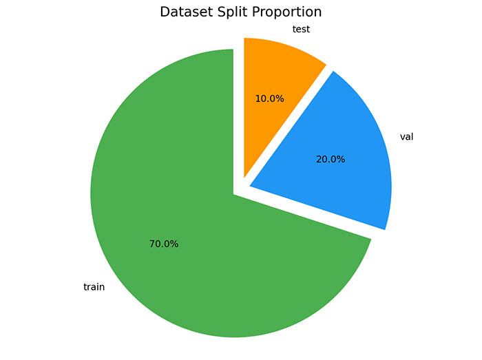 数据集按照约 70:20:10 的比例划分为训练集、验证集和测试集: