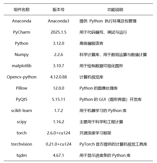 对本实验所需的各类软件及工具的基本信息进行了清晰汇总。