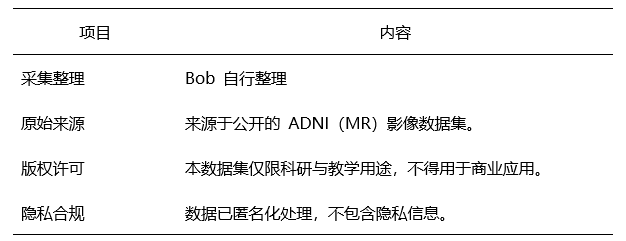 本系统使用的阿尔茨海默病影像数据来自ADNI(阿尔茨海默病神经影像计划)数据库,该数据库包含健康对照组(NC)、轻度认知障碍(MCI)和阿尔茨海默病(AD)患者的MRI影像数据,并提供多时间点的纵向扫描。通过筛选ADNI中的影像数据,构建了一个涵盖不同认知障碍状态(轻度、中度、极轻度认知障碍及无认知障碍)的数据集,为阿尔茨海默病的早期诊断提供高质量的训练数据,并推动了深度学习和人工智能技术在医学影像分析中的应用。